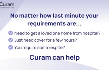 The Curam care agency is where you can find local carers all across the UK . You can check out carer profiles, photos and videos, check DBS records, qualifications and call and video interview carers.